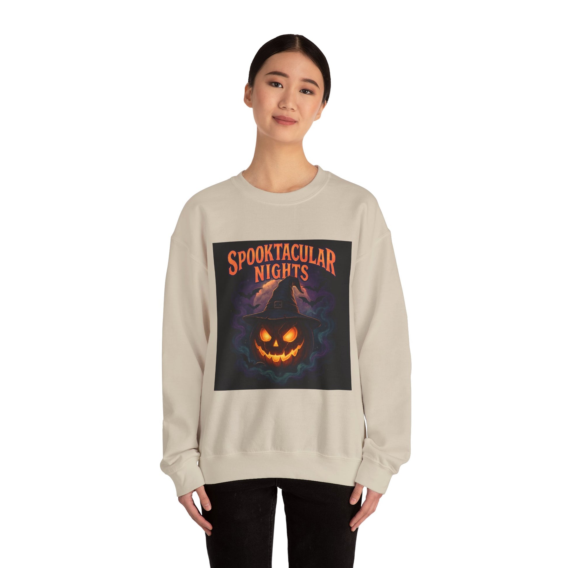 Stay cozy and spooky this season with our “Spooktacular Nights” Halloween Sweatshirt! Featuring a bold jack-o’-lantern design with glowing eyes, swirling mist, and gothic-style lettering, this piece is perfect for anyone who loves playful yet eerie Halloween vibes. The vibrant print pops against the deep black background, making it a standout for fall festivities.