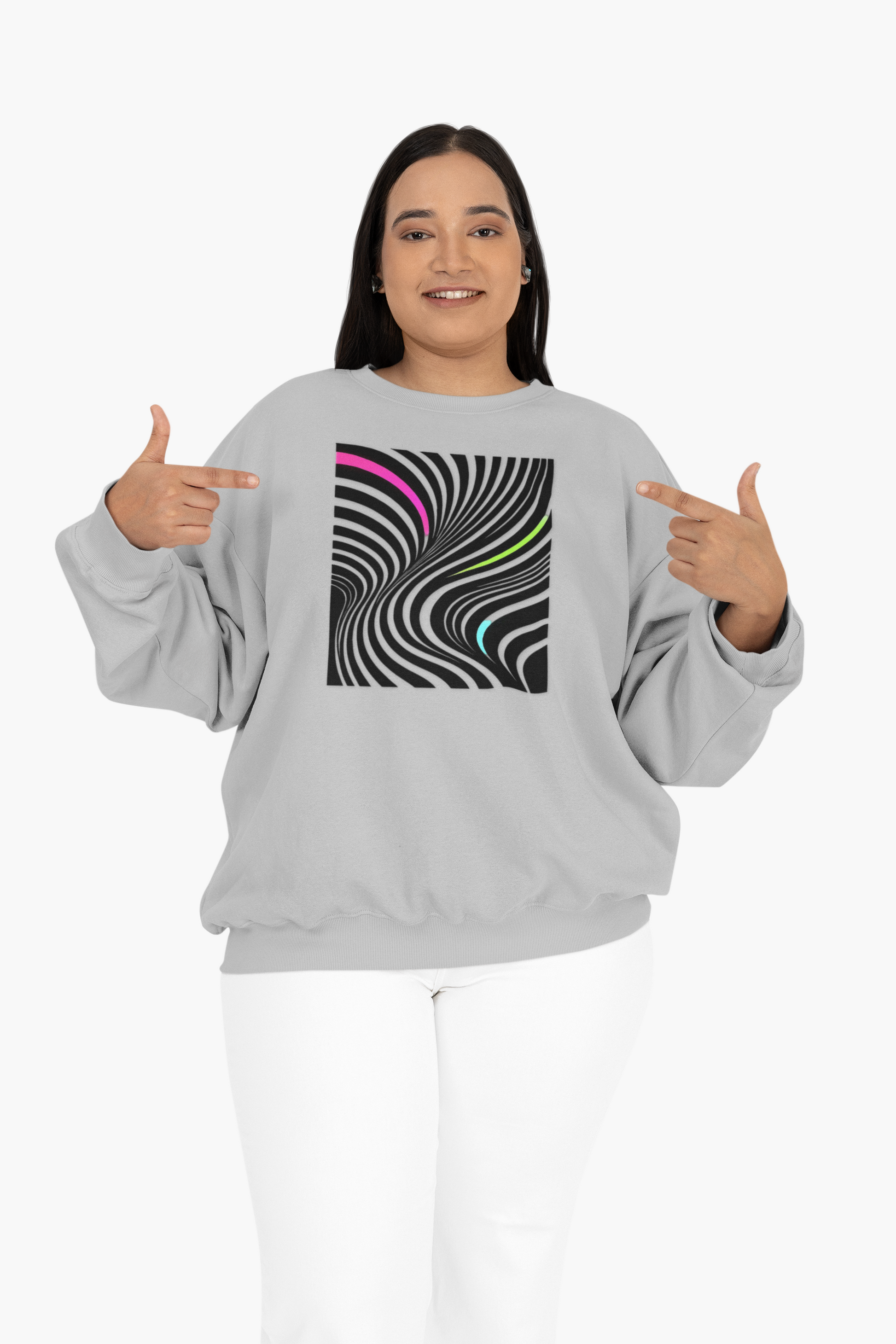 Wrap yourself in modern luxury with this bold striped sweatshirt. Black-and-white lines create a dynamic rhythm, while neon accents add an unexpected pop of color. Cozy yet stylish, this piece is perfect for making a statement on casual days or elevating your streetwear game. Minimalist design, maximum impact. Ideal for fashion-forward adults looking to stand out and make a statement. Perfect for casual days, streetwear looks, and urban chic outfits. Suitable for everyday wear, special occasions, holidays, and casual gatherings.